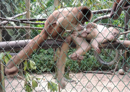 Uno de los principales logros del CCT Pilpintuwasi ha sido mantener en sus instalaciones un grupo numeroso de monos huapo colorados juveniles en estado de semi cautiverio. Es decir, se encuentran libremente en toda el área del CCT y sólo son encerrados por las noches. Los huapos colorados interactúan con los visitantes, se alimentan de los frutos, semillas y brotes de los árboles de la zona, mostrando conductas propias de la especie.