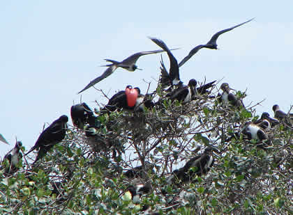 Es sin lugar a dudas uno de los atractivos turisticos de Puerto Pizarro que mas impresiona al visitante. Es recomendable visitarla en las primeras horas del día o al caer la tarde, cuando los pelícanos, tijeretas, patillos, garzas blancas y grises, revolotean sobre la isla ofreciendo un espectáculo sin igual.